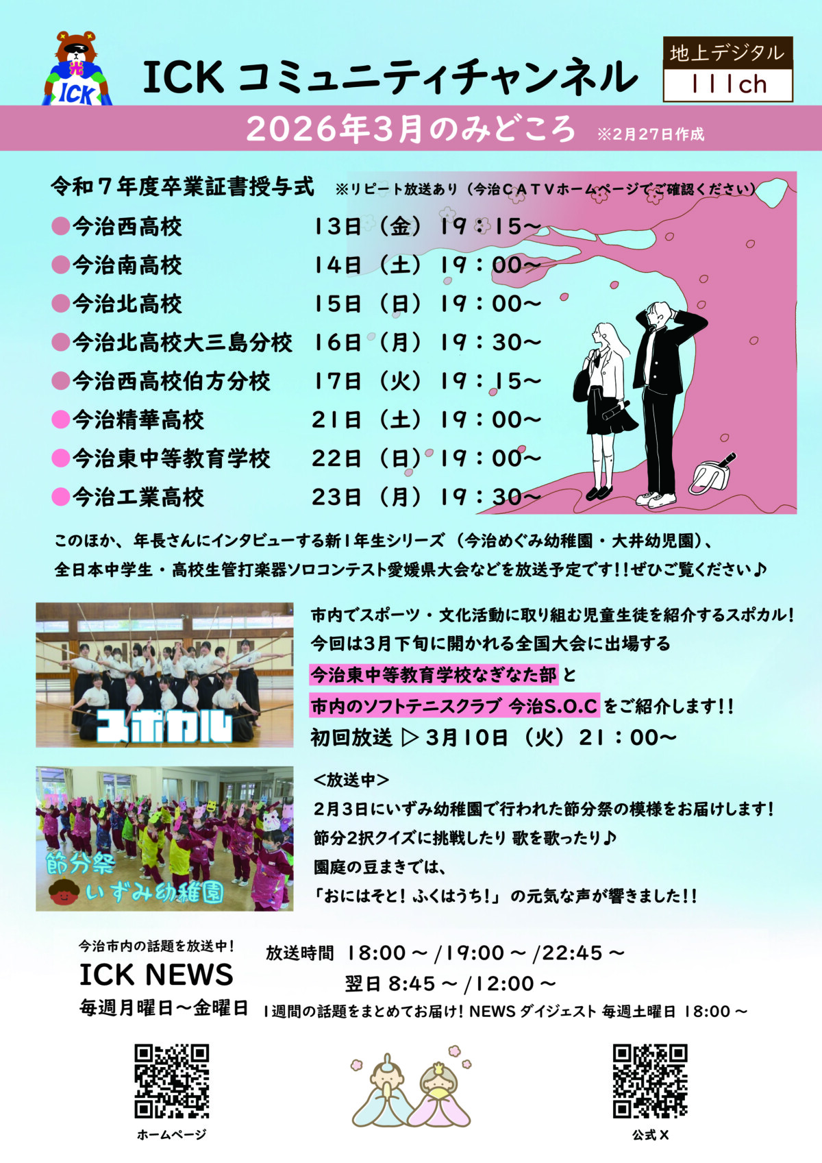 その他情報INFORMATION ホームお知らせその他コミュニティチャンネル 12月のみどころ コミュニティチャンネル 12月のみどころ category : その他 | posted at 2025.8.6 サービス・お申し込みに関するお問い合わせ お問い合わせフォーム TEL.0898-22-0001 受付時間9:00-18:00平日 9:00-17:00土曜 (日曜・祝日・年末年始を除く) よくあるご質問